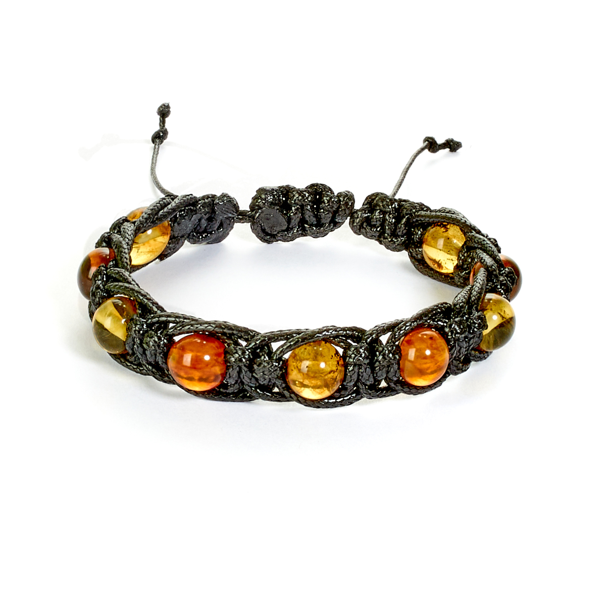 Браслет "Шамбала" с Янтарём на шнурке